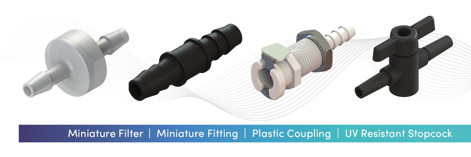 Kynar: This thermoplastic offers a balance of performance properties, with a resistance to harsh chemicals, as well as thermal and ultraviolent environments. This resistance to UV makes it an ideal material for items like stopcocks and other fittings, as inks that are sensitive to UV are shielded and prevented from curing prematurely.