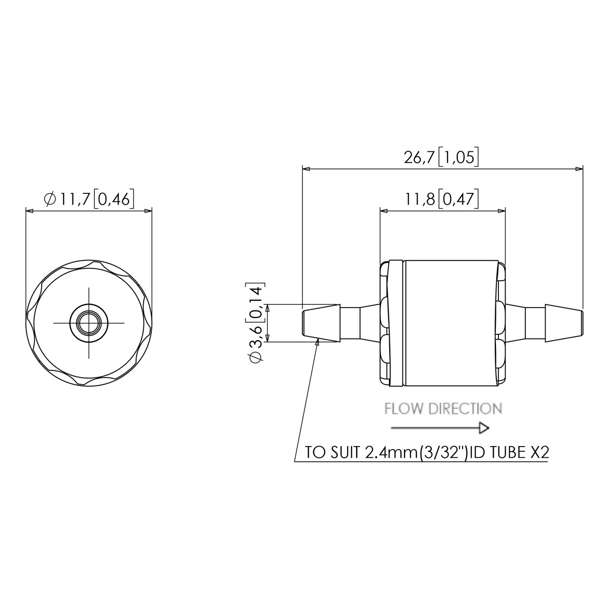 Connection 2 To suit 3/32" (2.4mm) ID Tube
