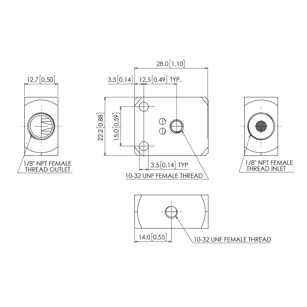 Description Nickel Plated Brass Single Station Manifold, 1/8" NPT Female Thread - ESV Series & EHV Series