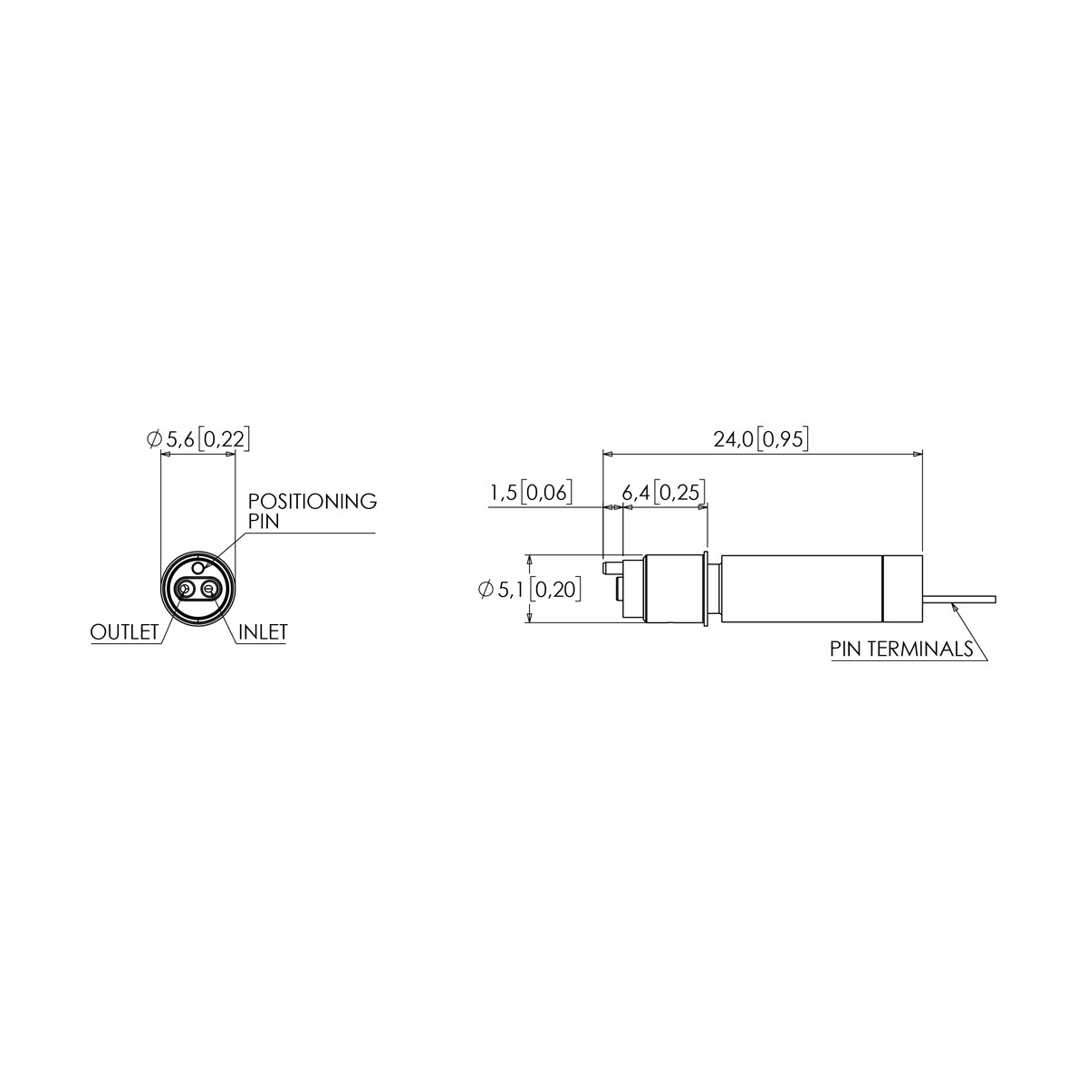 Description Stainless Steel 5mm 2 Way Media Isolation Cartridge Valve, Normally Closed, FFKM Seal, 0.2mm Orifice Effective Size, Pin Terminals, 12VDC